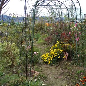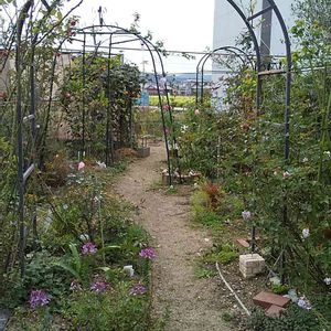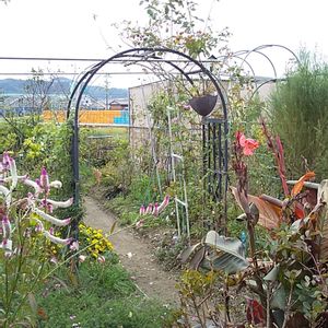 一番東の通路。この冬は🌹の大移動をしたいけれど、体力が😅 計画性をもって植え込まなきゃですが、オールドローズメインにしたい~💕 頑張らねば、今日が一番若い。体力はキツくなるばかり😁🤣🤭