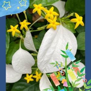 朝ドラ らんまん 植物図鑑 5月31日の花 💛🌿ヒロハコンロンカ(アカネ科コンロンカ属)別名ハンカチの花💛🌿 🤍白い花のような萼が目立ちますが(ハンカチみたいで)💛黄色い星のような花〜冬に枯らしてしまいました✨ 反省!🤣 (20年7月の過去ピック)