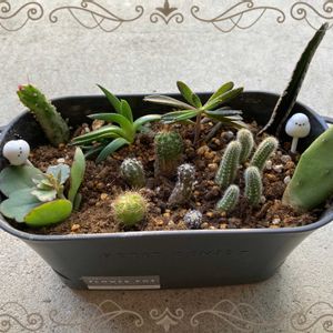 ミニサボテンの寄せ植え 皆さんみたいにギューギュー寄せ植えを作ろうかと思ったけど いつもの大きくなるの見越しての【スカスカ寄せ植え】にしましたw