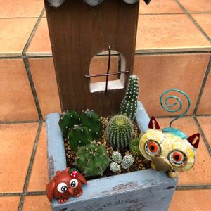 こんにちは😃 今日は🏷フクロウ祭🦉ですね。 いちごちゃんが送ってくれたブリキのフクロウ(あれから2年近く経つのね😌フクロウ持っていないと言ったら送ってくれて、優しいいちごちゃんに感謝💕)と、お手製フクロウ🦉めちゃくちゃ可愛い😍 百均の🌵と、わが家で育ったミニサボテンたちと一緒に♬
