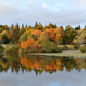 いもり池からの妙高山 夕方近くて 妙高山はみえず でも紅葉は美しいです!