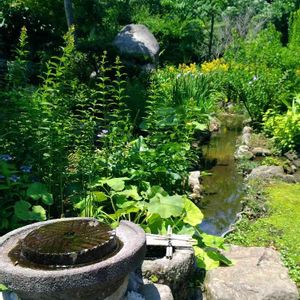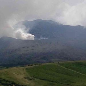 このお庭の向こうには60℃の温泉が湧き出ていて、天然の蒸し風呂も楽しめます😃😃 よく見ると湯気がモクモクです(^_^) 緑に囲まれたこんな素晴らしい場所があるなんて(^ー^)