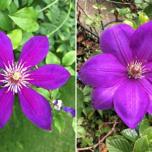 クレマチスは二番花と呼ぶのかわからないけど咲きました💕 💜紫峰💜 です。サイズ小さいです。半分ぐらいかも😅