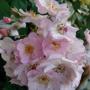 おはようございます😊 ワンコ散歩で見つけた薔薇です🌹小学校の裏門の横で咲いていました😊🌹💕 1️⃣薄いビンクの薔薇🩷🌹可愛らしいです😍 2️⃣3️⃣黄色い薔薇💛もう開き過ぎね💛黄色い大輪の薔薇は優しかった伯父を思い出させてくれます😌💛 4️⃣バラ🌹白いアヤメ🤍ビオラ💜💛の可愛らしい仲良しさん😊💕 5️⃣このバラも咲き誇っていました🌹❤️😊