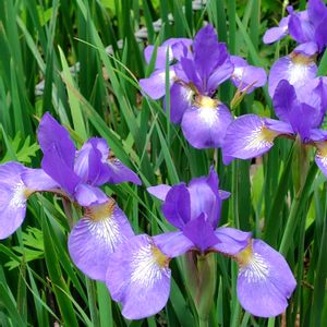 ①〜③アヤメ アヤメ科アヤメ属 多年草 北海道〜九州に分布。 山地の乾いた草原に生える。 花期5〜6月 花茎は根元から群がってたち、高さ30〜60cmほどになり、先に2〜3個の花が付く。 花は径8cmほどで紫色で、花被片は6個あって外側の3個の花被片は広卵形で基部に黄色と紫色の網目模様がある。内側の花被片は細く直立する。 1つの花は1日でしぼむ。 ④⑤白いアヤメ 突然変異で生じる白い花 赤や紫、青色の花の植物は本来の色ではない白い花をつけることがある。 これは突然変異によりアントシアニンという色素を作らなくなるためである。