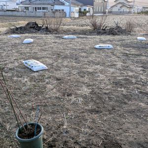 今春からガーデン作りをするので 今日は土壌改良するのにバーグ堆肥を入れる準備をしました。 先はながい💦