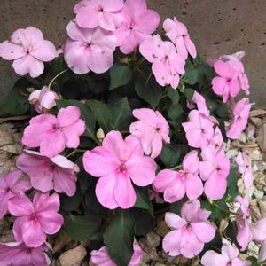 日陰側を彩るお花にはインパチェンスしかなく。 コラージュだと上手く収まらないので、1色づつ。 家の北側にはこの濃いピンク。