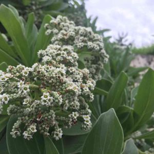 モンパノキ(紋羽の木)です。 沖縄では海岸の砂浜でよく見ることができますよ。🏝🐠 春から夏にかけて可愛い白い花が咲きます。