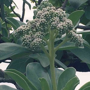 海辺にだいたいあるモンパノキ お花が可愛い、カリーフラワーみたい。 食べられるみたいだからいつか… 虫にも大人気です🐛