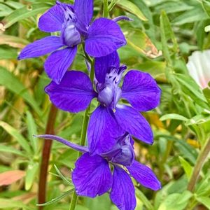 💠ラークスパー和名は千鳥草(ちどりそう) 飛燕草(ひえんそう)5月~6月開花 キンポウゲ科、一年草、酸性土壌を嫌う 花散歩で出会った綺麗な花💜💙 紫やこの薄紫色の花がすらっと1本立ちして沢山花壇に咲いていました💕 花の先の距の形が鳥の蹴爪に似ている事から名前がついているとか 私には上の蕾が可愛い鳥の姿に見えます 目印になり可愛いですよね🕊