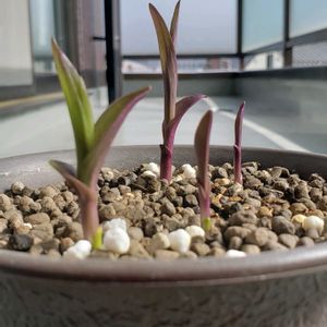 昨日の6月にお迎えした カラス葉カキラン 12月初めに地上部が枯れて 休眠しました❢ 地植えでしたら そのまま外で 冬越しできるのですが 鉢植えなので 室内に避難٩( ˙꒳˙ )ว=͟͟͞ うちでは薄暗くて一番寒い 東側の洋室で( ˘ω˘)スヤァしてもらって いましたが お目覚めになられた様で 芽が2つ出て来てしまいました💦 どんどん芽が伸びる様であれば 暖かい 南側のお部屋に移動させようと思います♪
