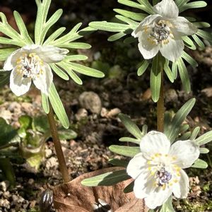 スプリングエフェメラル バイカオウレン キンポウゲ科オウレン属 高尾ハートルートの途中で野草園に寄り見つけました 2024.2.17撮影