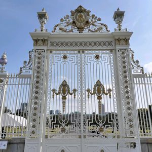 お出かけして来ました👜🎵✨ 1月16日 番外編 迎賓館赤坂離宮🏰 1️⃣迎賓館正門・出口 これは出口 正門から見ると右側が工事で白い壁になってました。 2️⃣本館正面 「国宝」 創建から100年を迎えた2009年、本館、正門、噴水⛲などが明治以降の建物で初めて指定された。 3️⃣「建設の総指揮 片山東熊」 建物の両翼を前方に張り出し湾曲させた特徴的な設計 4️⃣屋根の上の飾り付け 星🌟をちりばめた天球儀、それを囲うように羽を広げた金色に輝く霊鳥4羽そして桐の葉の後紋章 5️⃣屋根の上の飾り付け 阿吽の鎧武者 本館の中の窓から4️⃣霊鳥が今にも飛びそうにはっきり見えました。