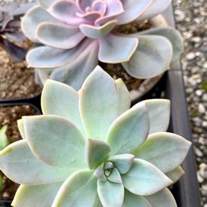 大きなエケベリア 同士の寄せ植え🏵 まわりにセダム刺したら蒸れやすくなったゃうかしら?? そろそろ梅雨入り間近…早く寄せまとめないと💦