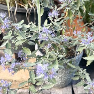 “カリオプテリス スターリングシルバー” ちょっと咲き進んだ状態だけど… 小さい鉢で、酷暑を乗越えたつわものさん👍