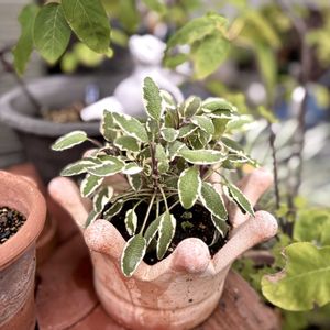 “サルビア トリカラー” この葉っぱが、可愛いんだよね💕︎ 小ぶりの可愛い鉢にIN♥️