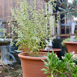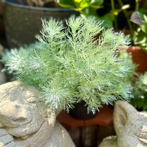 “アサギリソウ” 涼しげな雰囲気が好き 酷暑の中の癒し系(笑) ちょっと長めになったのが気になるけど…我慢⁝( `ᾥ´ )⁝ このこは夏に花を咲かせるんだよね 小さいらしいけど… 私…気づくんかな…ちょっと不安😅