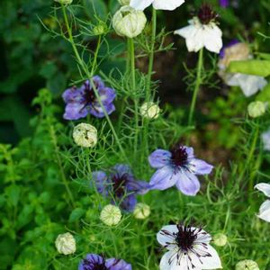 ニゲラ アフリカンブライドが咲き始めました💕 種取りまたはドライフラワーにしたいです😊 ポイント2つ、種は嫌光性、根は直根性。 🏷金曜日の蕾たちに参加させて頂きます。 *ネットから。 「種まき 9月~10月頃。 小さめのポットに土入れ、種を蒔きます。 光を嫌う(暗発芽種子)なので、種を蒔いたら土を十分に土をかぶせます。発芽して育ち始めたら10月~11月に花壇や植木鉢に移し替えます。 ニゲラは嫌光性 ニゲラは「嫌光性」という性質を持ちます。「嫌光性」の種は、光が当たっていると種が発芽しない性質のため、種を蒔いたら必ず土をかぶせて光を遮らせる必要があります。同様の性質を持つ植物として、ワスレナグサやルピナスも「嫌光性」です。 ニゲラは直根性 ニゲラは直根性の植物なので移植を嫌う性質です。一番いいのが、種による直播ですが、苗として購入した場合は根を触らないようにしてポットから苗を取り除いて植えこみます。」