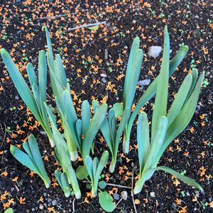 10月30日、神奈川県寒川町で撮影。 スイセン① 水仙の芽が出ていました。散った金木犀の花も綺麗でした☺️ 水仙は、寒川の町の花です🌼