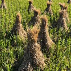 9月22日、神奈川県の小出川沿い(藤沢市、茅ヶ崎市、寒川町)で撮影しました。 稲刈りやはせがけが始まっていました😊この状態は、脱穀した後の藁を天日干しする、積み藁をしている所のようです。 分かりにくいですが、奥の方に寒川町の鳥、サギがのんびり歩いていました☺️