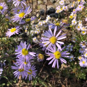 相模川の河原に咲く カワラノギク(絶滅危惧種) 薄紫の花弁のノギクが良い香りを漂わせていました 砂礫地でしか咲かないそうで、保全活動の皆さんの努力によるものだそうです🙏 GS花友さんに教えて頂き、観に行って来ました🎶