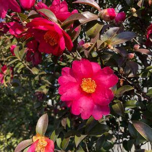 1月15日、神奈川県寒川町のさむかわ中央公園で撮影。 葉っぱが紅葉した山茶花が咲いていました☺️