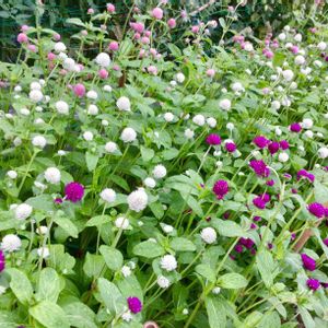 今年のセンニチコウ 昨年のものを種を取って 植えました。🤔1色足りません 昨年1番沢山咲いていた朱色が ありません😅✨✨種を取り忘れたか😔✨✨✨