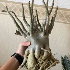 *アデニウム タイソコトラナム* 立派なアデニウムが届きましたー😊 根っこがムッチリたくさん伸びてるオクトパスフォルム♥️ 想像してたよりも大きくて重量感ハンパない。。。! 平たい鉢に植えてみたいけど、上手く植えられるかなぁ😅 日中がまだあったかい日が多い今のうちに植えてあげたいっ 今日、仕事の休憩時間に鉢探し行ってきます笑