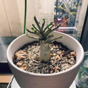 あれから半年くらいかな? 我が家のアデニウムさん、 何とか葉っぱを保ちつつ、 寝ていますか? 浅い眠りについてますねー、 1回、12月くらいに枝が柔らかくなったので、お日様の日にチョロンとお水あげたら、 次の日いい感じになりました( ﹡・ᴗ・ )b それからあげてなくて、 今も元気な様子♡♡ ハリネズミさんと日向ぼっこしてますよー(*^^*)