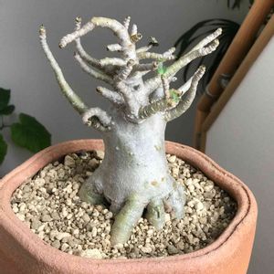 初めて『えこりん村』に行った時 一目惚れしてお連れした『アデニウム タイソコトラナム』 洋梨のような体型が可愛くて💕 右が正面(私が決めた👍🏻)。 下っ腹が少し剥けてるの😅 左が後ろ姿。 暴れん坊の尻尾がパシパシしてる(๑´ლ`๑)フフ♡ お水をあげると直ぐに葉っぱが出てくるって言ってたけど〜🤔 先ずは貴女にお似合いの鉢を見つけてあげなきゃね٩(๑❛ᴗ❛๑)۶