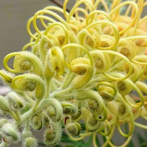 上に伸びた蕾 グレビレア ピーチズアンドクリーム