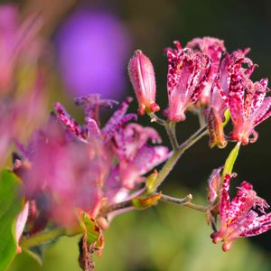 ❝ 夕陽を浴びる ホトトギス ❞ ❛ 背景にあるブルーは数がかなり少なくなっていますが、まだ咲き続ける桔梗の花です ❜ こんにちは! コロナウィルス感染、気を緩めずに!。。。ですね! ホトトギスがたくさん咲いています。写真はその一部です。 昨年、ユーザーの ゴンゴンさん から詳しい名称を教えて頂いたのですが、すぐには出て来ません・・・。 生憎、直接に陽が当たらない時間帯の撮影でしたが、補助光にレフ板を使って間接的な自然光を当てています。 短い時間ながら、撮影設定で工夫を試みています。 撮影日:2020年10月21日 午後 焦点距離400mm(=実効)のテレマクロ撮影