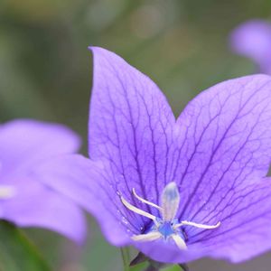 昨日の朝に撮影したものです (╹◡╹) 開花して半日くらい経過した状態です(^^) これで我が家の庭で今年咲いたキキョウ科の 花(グランドカバーは含めず)は第19番目です!😃 昨年9月初めに種まきして育てた子たちの中で 先頭を切って開花した最初の一輪です!😃 種まきから育てて、開花するのを観ると 特別な気持ちが湧きます☺️ 特に桔梗は発芽率は60%以上でしたが、 秋まきでは他の宿根草の子たちに比べて 9月初めの種まきでも冬越し出来なかった 幼い苗は発芽した中の二・三割もありました・・・😂 見聞きする話で『2月の種まき』が桔梗には いろんな意味でベストタイミングかと思いました☺️ ポール・スミザーさん/ガーデンルームスから 購入した種で、『原種の桔梗』です😊 おしべが5本開いている開花のユーザーさんの 投稿PICもよく見ますが、この桔梗は真ん中の めしべにまっすぐ沿っています😊 P.S. 今日、花を見て分かりましたが、 開花して、1〜2日後には雄蕊も花弁に 遅れながら、開くようです😊