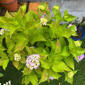 今日はアジサイ祭り 12:20〜14:09 1️⃣霧島の恵をカット 2️⃣マジカルをエゴの木の下に移動する 3️⃣ピンクアナベルも木陰に 4️⃣シックなヘリオトロープとアナベル 5️⃣今日は少し涼しい軒下