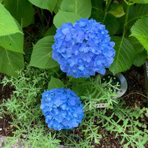 紫陽花 霧島の恵み 紫陽花にも早咲き・遅咲きがあるようで、 霧島の恵みは早咲きみたいです。 遅咲きの薔薇と同じ時期に咲き始めます。 今年は青色紫陽花の肥料と鹿沼土を撒いたので、青で咲きました。 紫のグラデーションで咲くのも好きなのて、来年は鹿沼土を撒くのをやめてみようかな。