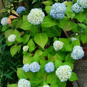 鉢植えアジサイ2種類 小さな枝に花が結構大きいです。 この二つは、このまま来年も鉢植えにしようかと思っています❤️