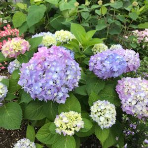 かしわば紫陽花咲いてきました🥰 今年は梅雨入りが早かったので、紫陽花のシーズンも早めかな?グリーンはハーブでお料理に使います😁