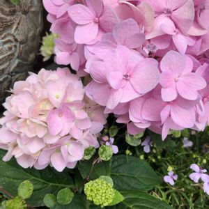 紫陽花 ピンクの霧島の恵 2ヶ月振りに咲いたんだけど、、、☺️ 鉢に植える時、ちょっと、色変わったら面白いかなって、鹿沼土を加えてみました。 お、おー❣️これは、緑❣️ 小さなブリキの鉢に植えてるからずいぶん小さいけど3つ咲いてます。 チョット、ブルーがかった子も、、、 面白いなぁ、、💕