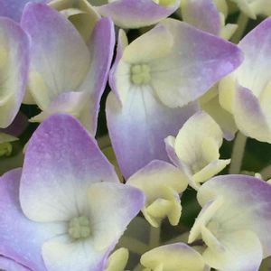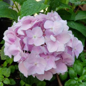 優しい色の 紫陽花 霧島の恵 ホームセンターの片隅に ぽつんとひとつ置いてあった小さな苗 見切り品^ - ^# 3年前、地植えしたこは 今は、青が混じり紫に💦 今回は鉢植えにしました。