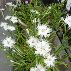 純白の カワラナデシコ 刈り込んでまた咲いてきました😃 花びらの枚数が増えてる⁉️