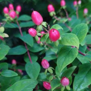 💠今日のお花ヒペリカム💠 ピンク色のヒペリカム・アンドロサエマムの実、可愛いです💕 オトギリソウ科 オトギリソウ属 黄色いヒペリカムのお花にはいろいろな種類があります。