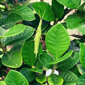 我が家の多肉ちゃん「朧月」にバッタさんがしがみついています。🦗🌿 「朧月」は茎が延びてお化けのように成長しています。👻🤗😄🌞