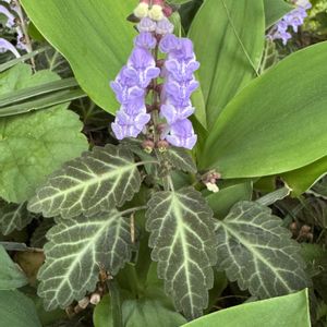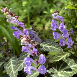 ツクシタツナミソウ(筑紫立浪草) 台風一過の青空で、青い立浪草を思い出しました🌊🌊🌊。 先月の日光植物園にて。 タツナミソウが咲いてるぅ~と思って見たら、葉っぱが変わってる🌿👀。 深緑色に、白い葉脈が浮き出るような葉っぱです。 ツクシタツナミソウの名前。日本固有種🎌 タツナミソウにも色々な種類があるのねぇ。