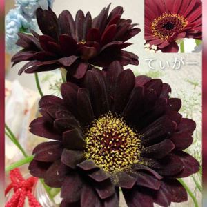こんにちは(*^^*) 新しいガーベラじゃないのよ〜(ヾノ・ω・`)チガウチガウ!!! この娘は、先月の29日に買い求めてたレンガ色の娘達。 こんなに色が変わるのね〜〜♬♬♬ (右上小窓が買った時の色です) 【ガーベラ】 キク科ガーベラ属 野生種でも約40種あるというガーベラは、ヨーロッパで 数多く品種改良され、現在、切花用品種は約2000以上。 その90%以上がオランダなどからの輸入で、 輸入された苗などを日本国内の農家が栽培している。 ガーベラという名前は、発見者であるドイツの博物学者 ゲルベル(Traugott Gerber)の名前から。 花弁の形状から、一重・半八重・八重に判別されるが、 花弁が糸状になったスパイダータイプのものや、 花弁が退化した球状タイプのものもある。