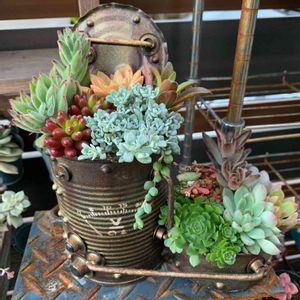 ノマちゃんのサビタン鉢🎶 リメ缶もだけど 鉢もカッコいいね😆💕 以前寄せ植えしていたのを 寄せ直しして〜😁