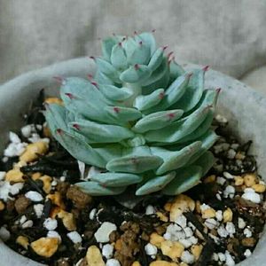 葉挿しして半年になるエケベリア・デレンベルギー(静夜)。 子株が出て数ヶ月経つけど、まだ葉っぱプリプリです。すごいなぁ〜。 直径1cmほどの子株ですが、いっちょまえに爪が色づいてる✨ かわいいです❤️