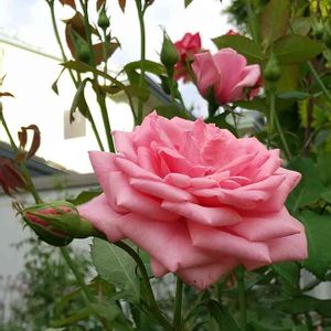 サマーレディ✨サーモンピンクの可愛い薔薇咲き初めました。もう8月なのに1番花なのです💓