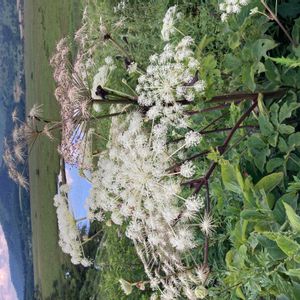シシウド(猪独活属) セリ科の属のひとつ。 本州、九州、四国に自生する多年生草本で、夏の暑い時期に山地で、日当たりのいい斜面にひときわ高く白い傘状の花を付けるためよく目立ちます 花期: 8-11月 分布: 在来種(日本固有種) 本州、四国、九州 ヨーロッパを中心に古くから、薬用 食用のハーブ🌿として用いられています。 葉は羽状複葉か3出羽状複葉で、花は複散形花序になり、花弁は基本的に白色で、ときに紫色、緑色がある。
