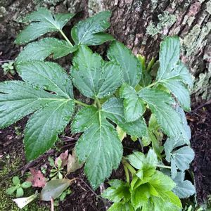 いつも散歩する公園に自然の状態であって最初はクリスマスローズかな、いやアシタバかと、ちぎってみたけどアシタバ特有の香りがわからない???