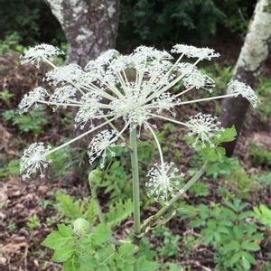 山奥自宅集落山道にて ウバユリ群生が咲き終わった跡地にシシウドが群生 ウバユリが花盛りの頃、グングン伸びてきた茎と葉はやっぱりシシウドだった 花火みたいに咲いて 今日もおつかれ 今日もありがと